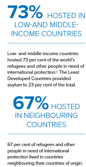 Most refugees are hosted in developing, not developed countries (most in a neighboring country).