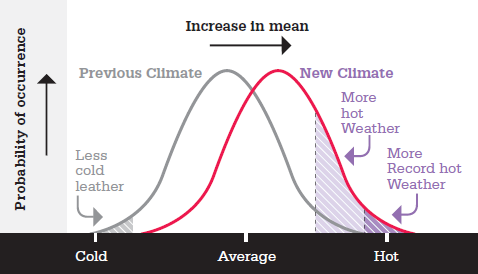 From the epidemiologist: An important technical point, is that even a small increase in mean temperature will create a large increase in number of hot and very hot days (slide by Professor Lesley Hughes, from IPCC AR4)